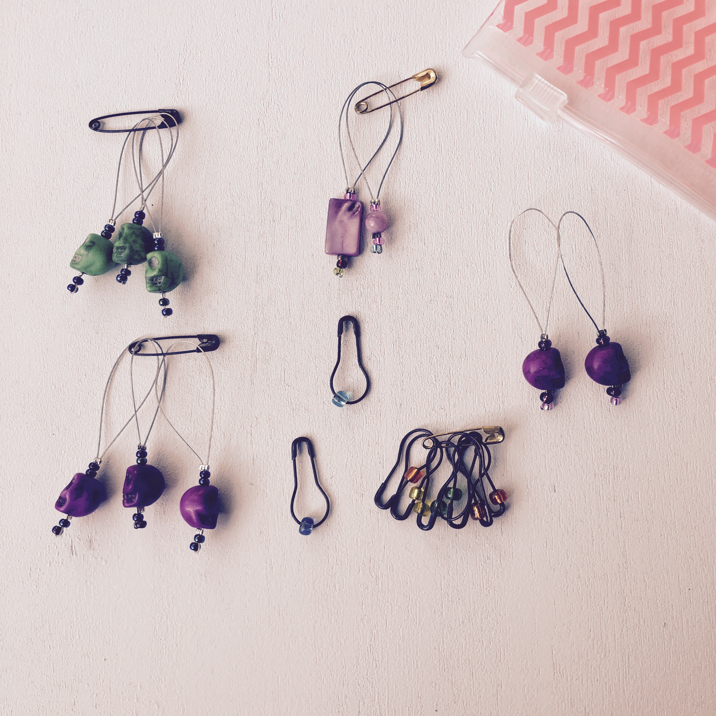 Michaela hatte mir auch eine kleine Totenkopf-Sammlung geschickt. Ich liebe ihre bunten Skulls, und auch die kleinen runden Markierer mit der Perle. Michaela könnt ihr übrigens am Samstag, den 7.5.2016 vonn 11-15 Uhr an ihrem Ateliertag besuchen. Es lohnt sich, nicht nur wegen schöner Postkarten, sondern auch für schöne Markierer, herrlicher handgefärbter Wolle und schöner Gespräche.